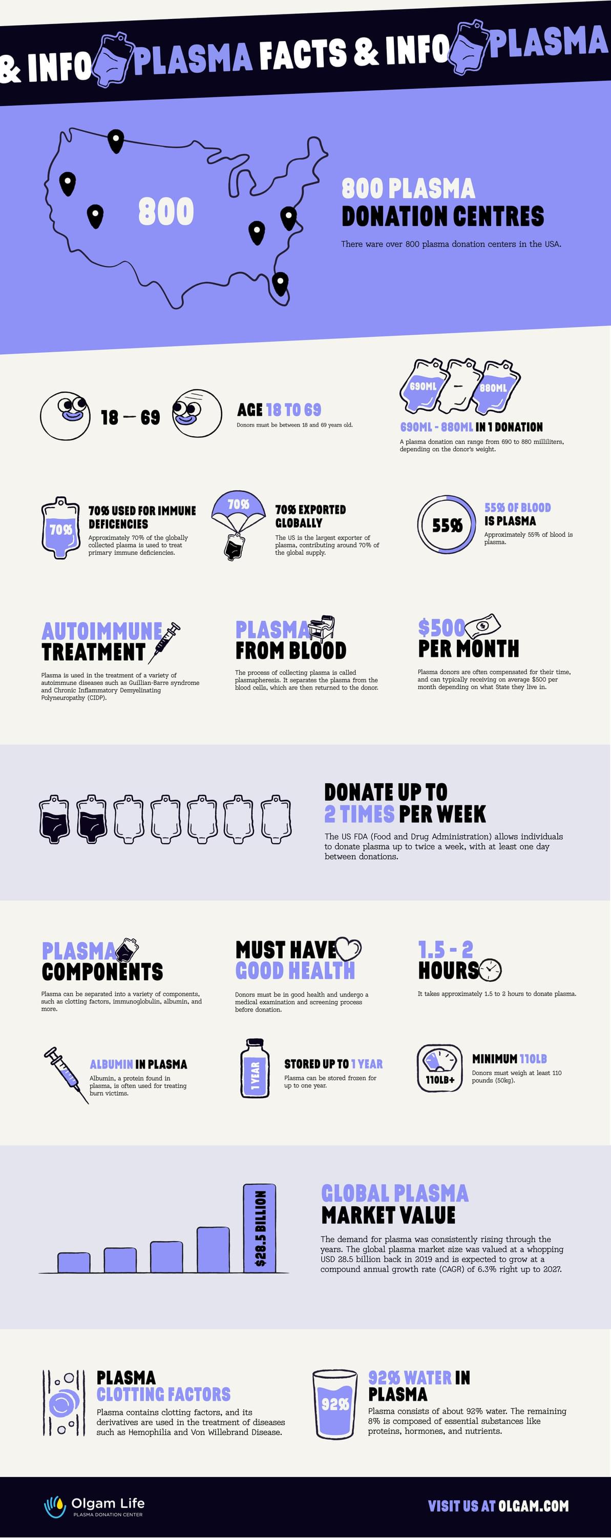 The demand for plasma has consistently risen through the years. The global plasma market size was valued at a whopping USD 28.5 billion in 2019 and is expected to grow at a compound annual growth rate (CAGR) of 6.3% up to 2027. So why are plasma donor statistics in the USA increasing at such a rate?